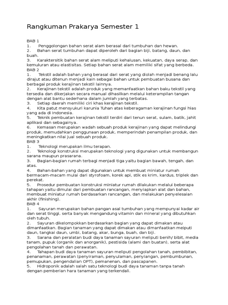 Ringkasan materi prakarya kelas 7 semester 2 tentang pengolahan bahan pangan sayuran menjadi makanan dan minuman kesehatan posted on april 24, 2021 by morimanjusri pengolahan bahan pangan sayuran menjadi makanan dan minuman kesehatan tentunya sangat penting untuk diketahui. Ringkasan / rangkuman materi prakarya kelas 7 mts/smp semester 2 bab i tentang kerajinan bahan limbah lunak: Sahabat pendidikan yang berbahagia, pada postingan kali ini saya akan membagikan atau menyajikan materi prakarya dan kewirausahaan kelas 12 sma khususnya yang ada pada bab 2 semester 1 yang mana materinya adalah berupa ringkasan atau rangkuman. Holtikultura berasal dari bahasa latin hortus yang artinya kebun dan colere artinya membudidayakan. Pada kesempatan kali ini, admin akan membagikan materi baru nih.